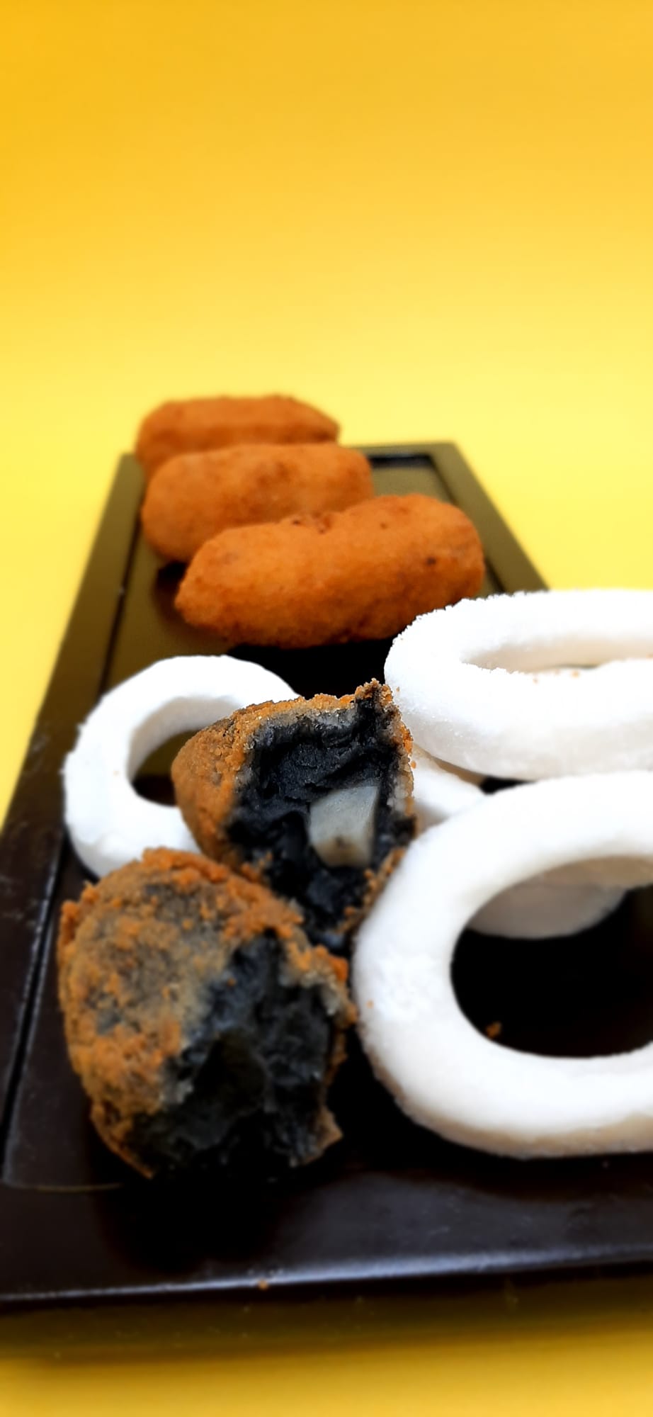 - Producto de alta calidad y sabores atractivos. Nuestra amplia variedad de croquetas abarca desde las clásicas de jamón ibérico, boletus y queso azul, hasta las innovadoras croquetas de temporada, como carabineros y calamares en su tinta. Exploramos también creaciones más exóticas, como nuestras irresistibles croquetas de puerro confitado y manzana caramelizada.