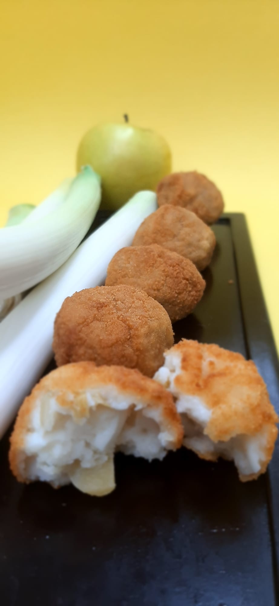 Croqueta de Puerro Confitado y Manzana Caramelizada